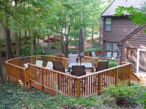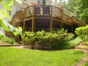 Constructed from durable materials such as wood or composite, curved decks are designed to withstand the elements while maintaining their beauty over time. Their soft contours not only enhance the visual appeal but also provide a welcoming atmosphere for gatherings and relaxation.Curved decks can be customized to fit various sizes and shapes, perfect for creating intimate seating areas or expansive entertaining spaces. Elevate your outdoor experience with a curved deck that combines functionality and aesthetics, transforming your backyard into a picturesque retreat for family and friends to enjoy.